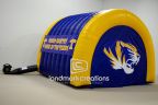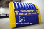 Traditional sports tunnels, like this one designed for the Troup County Tigers, include a choice of colors, name banners and the school emblem printed on the front break away doors.