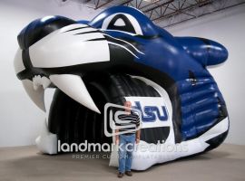 The Tennessee State University Tigers inflate their massive mascot tunnel, complete with extension tunnel, to excite fans at NCAA Division I football games.