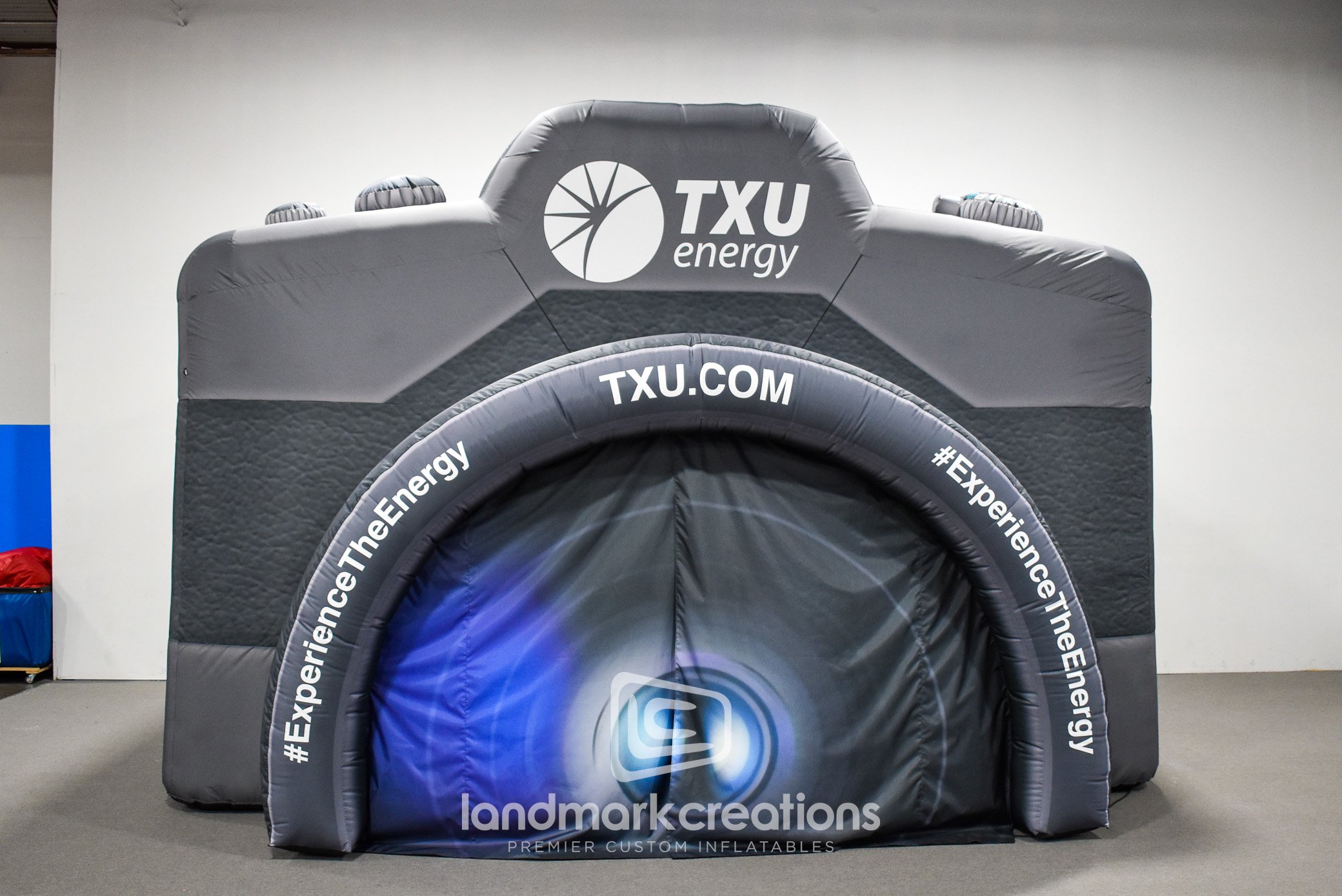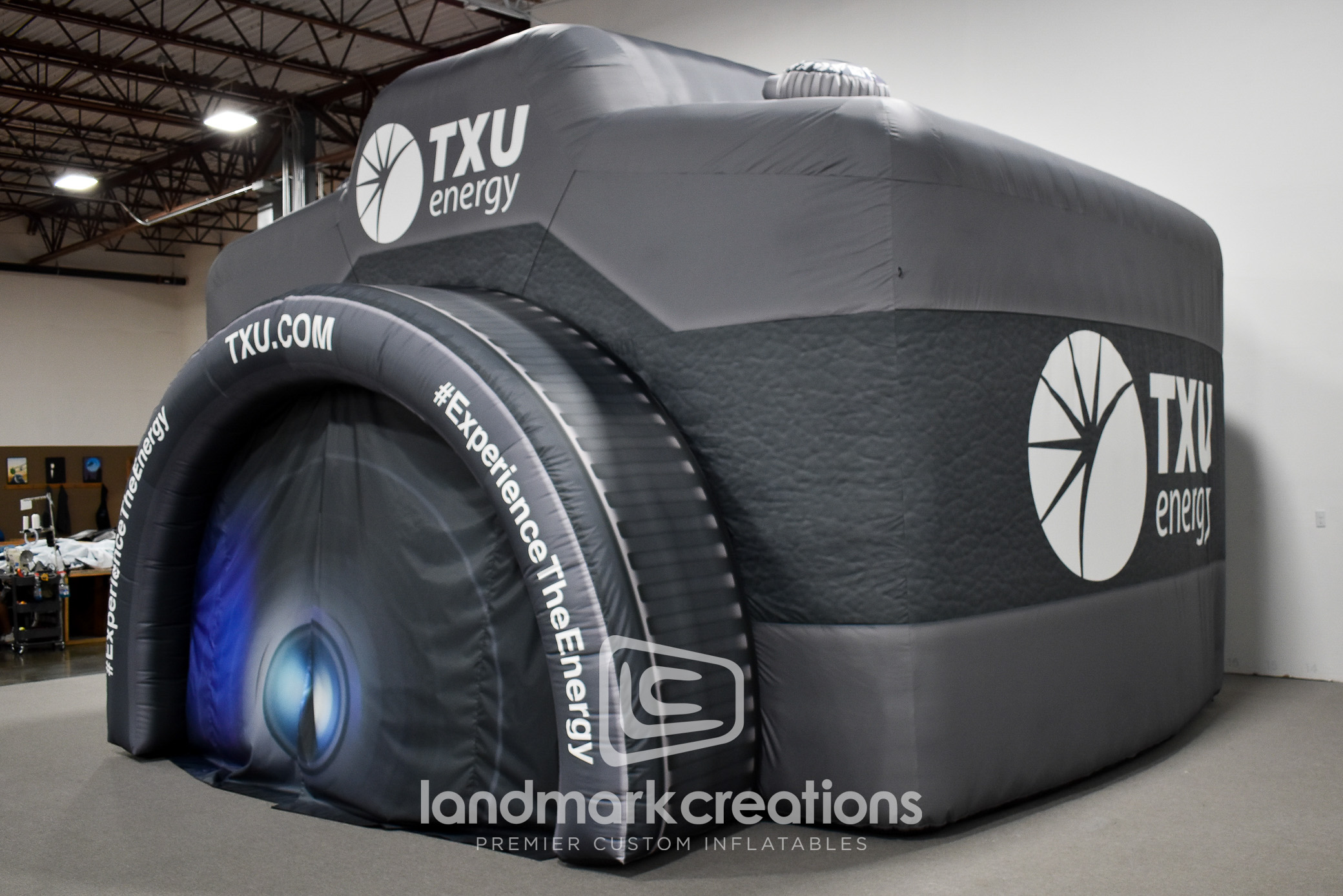 The Promotion House partnered with Landmark Creations to design an eye-catching inflatable camera booth for TXU Energy’s fan engagement at Texas Rangers games. This custom kiosk, featuring a green screen interior and sleek design details, created a unique photo opportunity for fans while promoting TXU Energy's brand. With integrated venting, tailored screen attachments, and versatile installation features, this inflatable seamlessly blends functionality with bold aesthetics. Perfect for experiential marketing and brand activations, it highlights how custom inflatables can transform event spaces into unforgettable experiences.