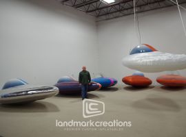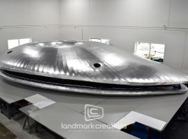 To create an unforgettable atmosphere at the 2025 Bitcoin Conference in Las Vegas, eighteentwentysix partnered with Landmark Creations to design a custom inflatable UFO installation. Suspended above the event’s common area, this 26-foot circular structure was built to surround a central truss housing video panels and high-powered lighting. The UFO’s design carefully accounted for light containment, ensuring optimal visibility for projection without bleed-through. With a mix of spectacle and strategic functionality, the inflatable helped transform the space into a high-tech focal point for attendees and photo ops alike.