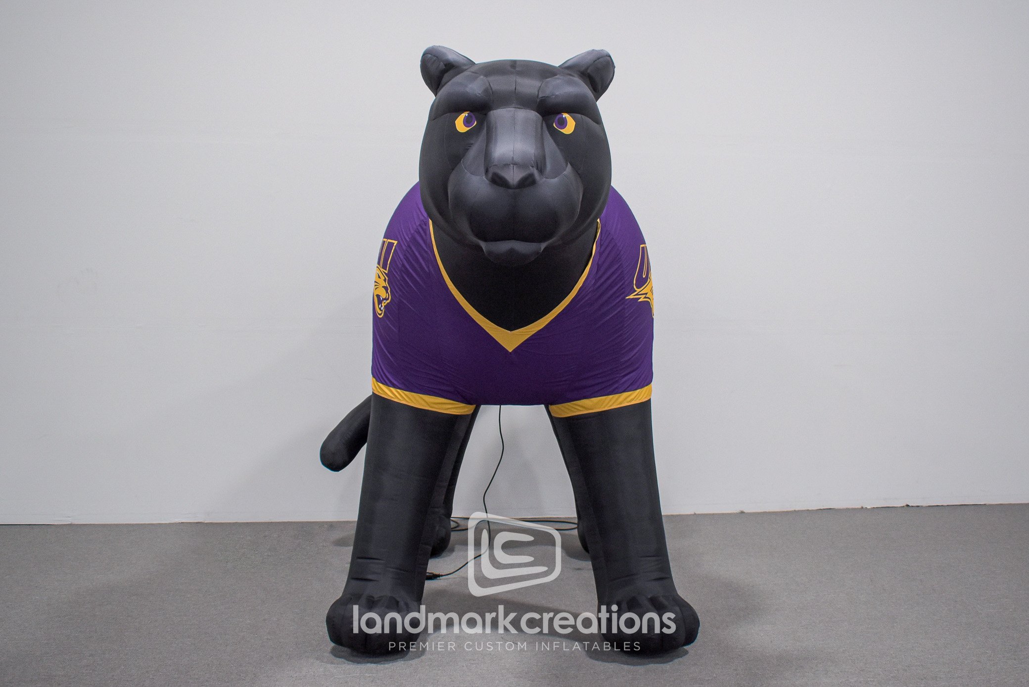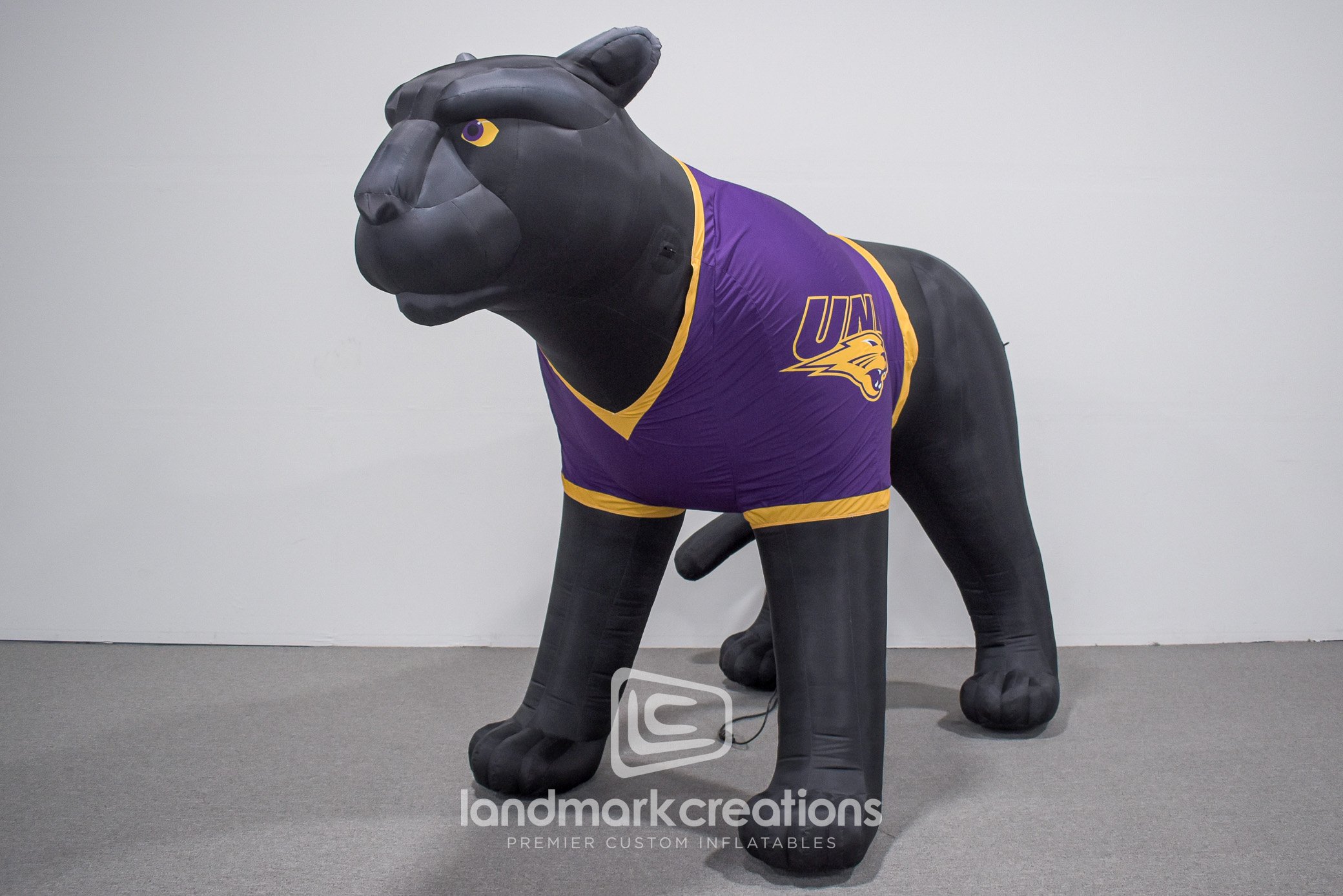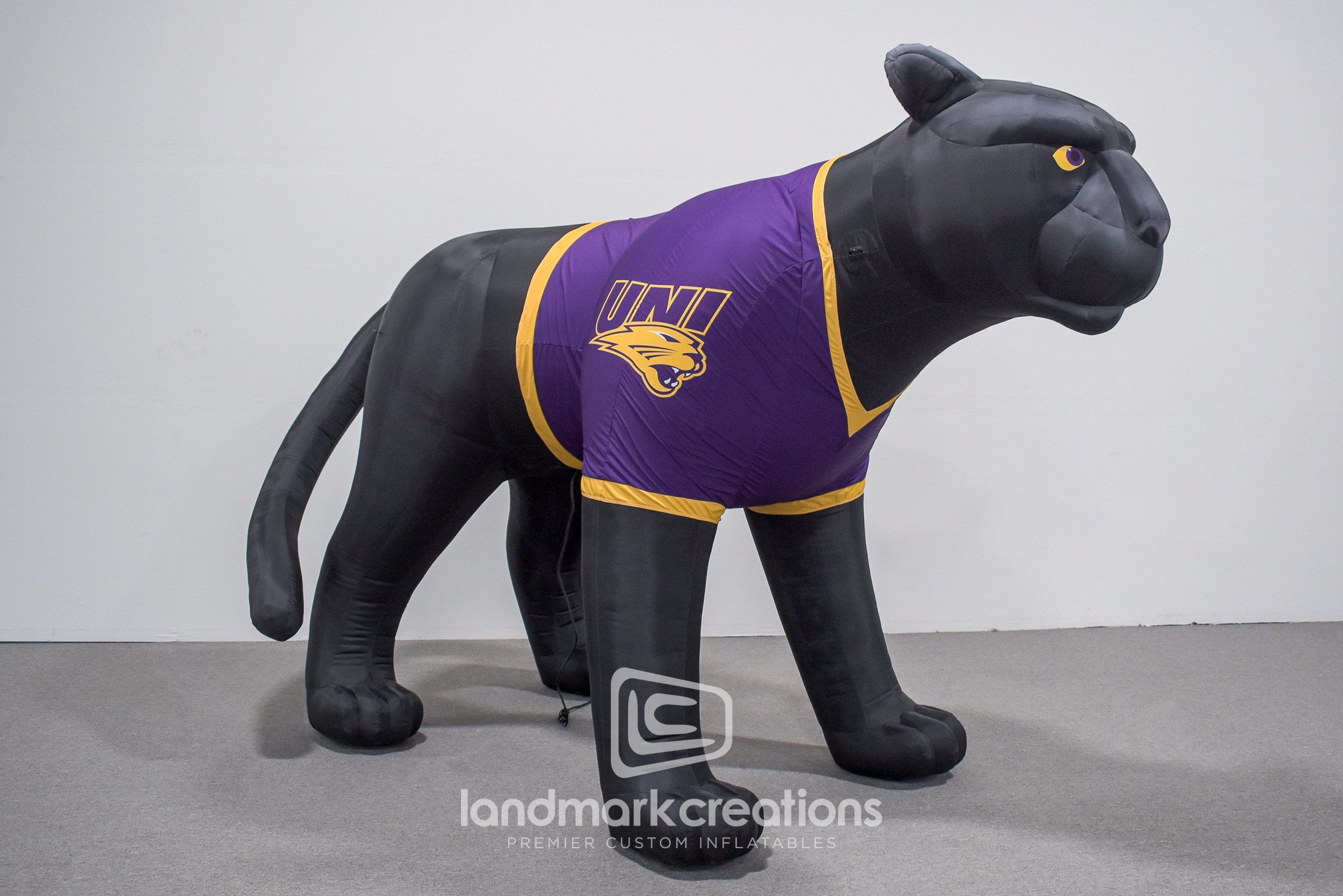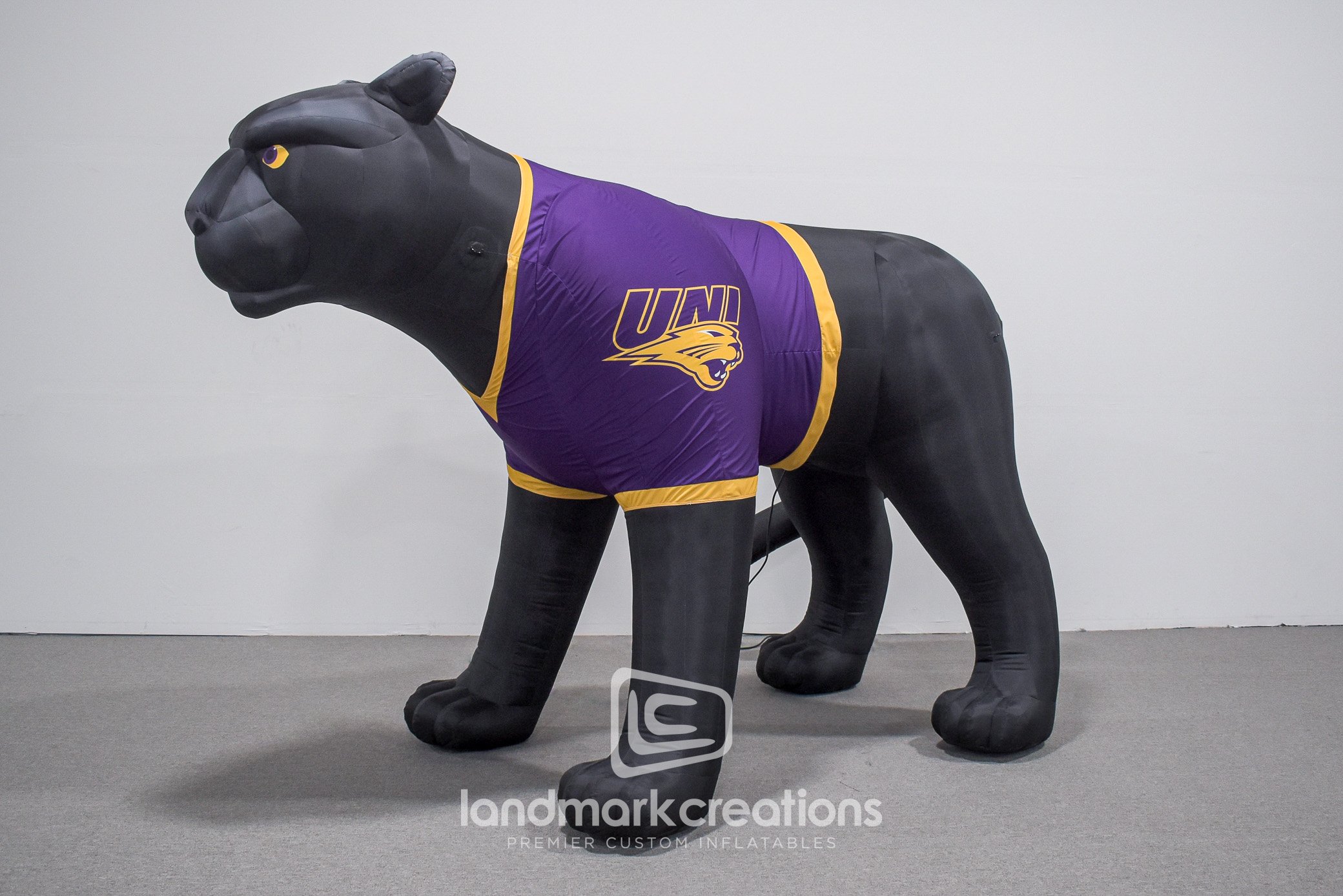 UNI's updated inflatable panther mascot, sporting the school's purple and yellow jersey is poised to greet crowds at community events and game time.