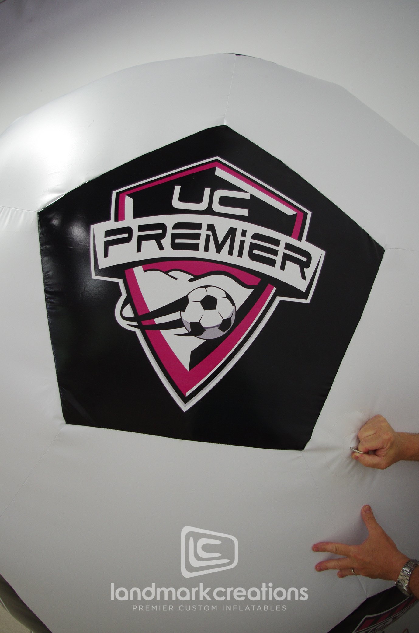 To create buzz the Union City Youth Soccer League inflates their giant soccer ball at tournaments! A great prop for taking pictures, the inflatable soccer ball is easy to use - Simply plug in, inflate, display!