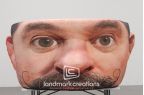 Artist Jeffu Warmouth filled this Head-Bowl with dozens upon dozens of smaller fabric heads, all self-portraits, to create the central piece in his solo exhibition at the Boston Sculptors Gallery, entitled Urgent Blowout.