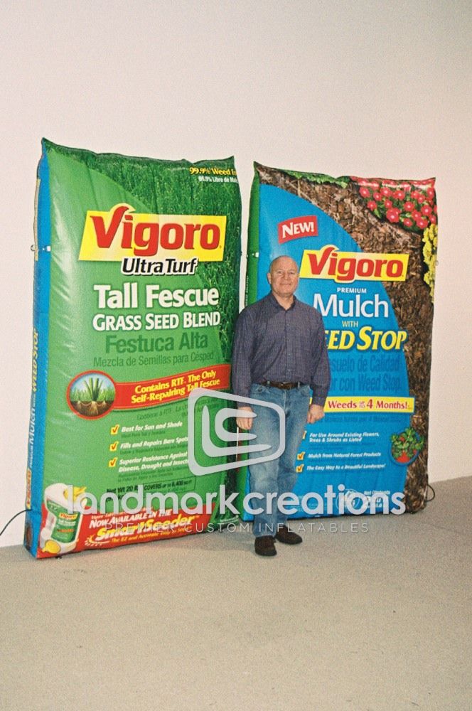 These inflatable product replicas of Vigoro Fertilizer, a Spectrum Brands product, were used to promote the lawn product at NASCAR events including the Busch Series and Nextel Cup Series.