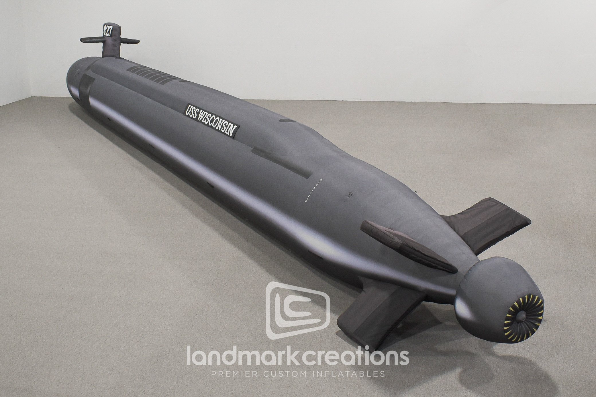 This full-scale custom inflatable model of the USS Wisconsin SSBN 827 submarine is used at presentations and events nationwide to promote educational programs and provide support for Navy Veterans. Because they're easy transport and can be made with exacting detail, military replicas make a perfect display piece for events where having the original item would be nearly impossible.