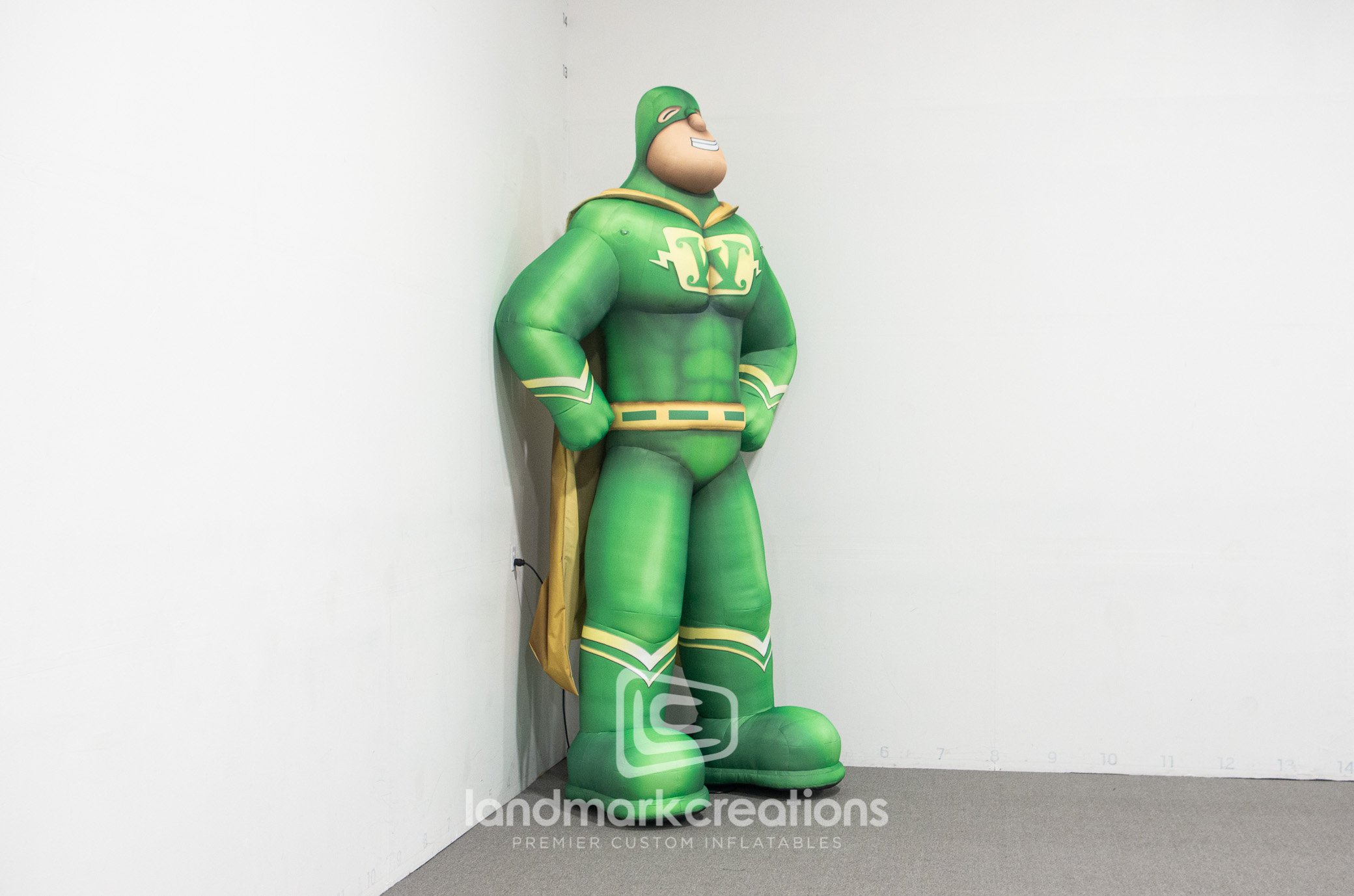 Professional lawn care expert Weed Man gets noticed by local crowds at parades and community events using a custom inflatable version of their Weed Man super hero mascot.