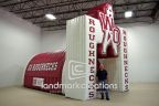 Add volume to a traditional inflatable tunnel by including a custom-designed front panel. This inflatable, for the White Oak Roughnecks, stands 20 feet tall and attract tons of attention.