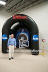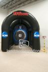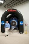 Wilson Sporting Goods and Sports Equipment interacts with crowds and increases brand recognition at NCAA soccer events with their custom soccer speed test inflatable.