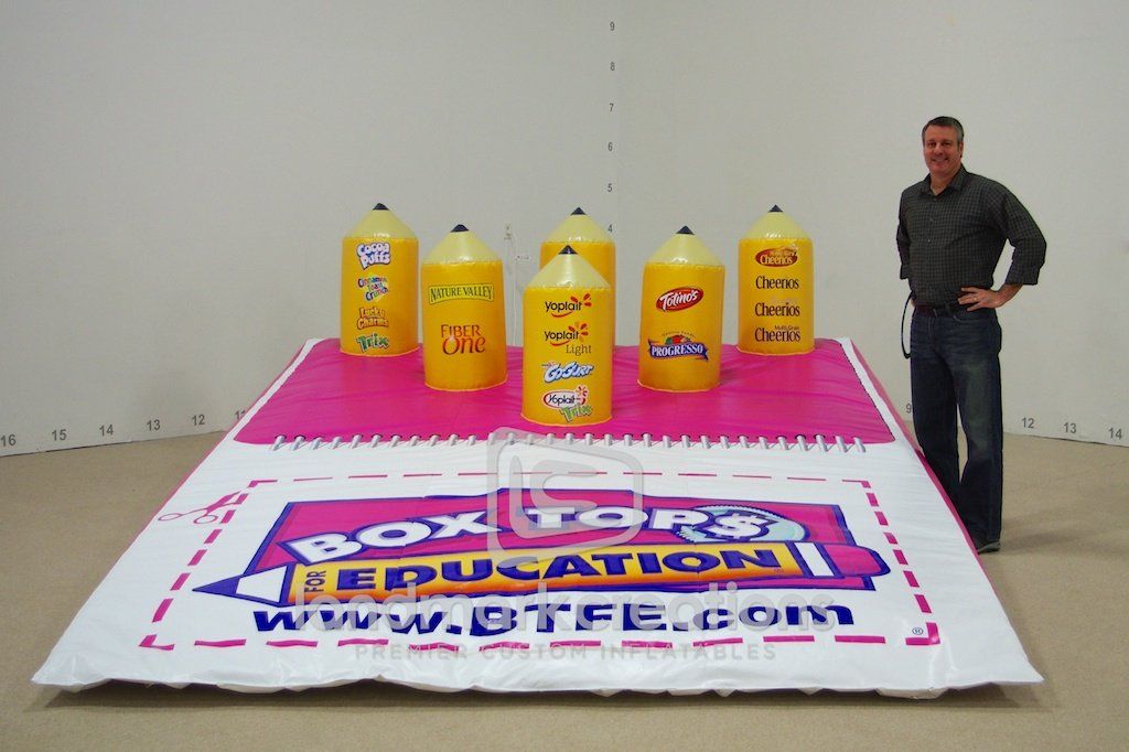 Box Tops for Education, one of the nation's largest school fundraising loyalty programs, inflates this interactive ring toss at community events to promote the program. BTFE also promoted their most popular brands by having their logos printed on the pencils!