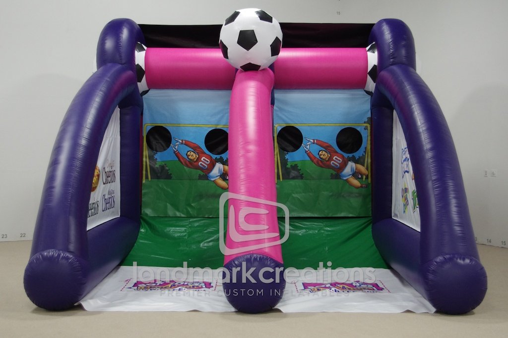 This inflatable soccer cage was inflated at community events to promote Box Tops for Education, one of the nation's largest school fundraising loyalty programs. The dual soccer cage gets individuals involved with the General Mills brands.