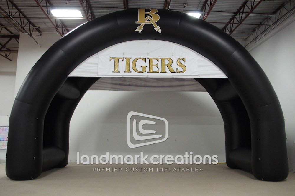 Want to increase school spirit at athletic events? Broken Arrow High School's double arch, complete with printed logos and school emblem, can be used as a welcome arch to sports games and as a pavilion at outdoor school events.