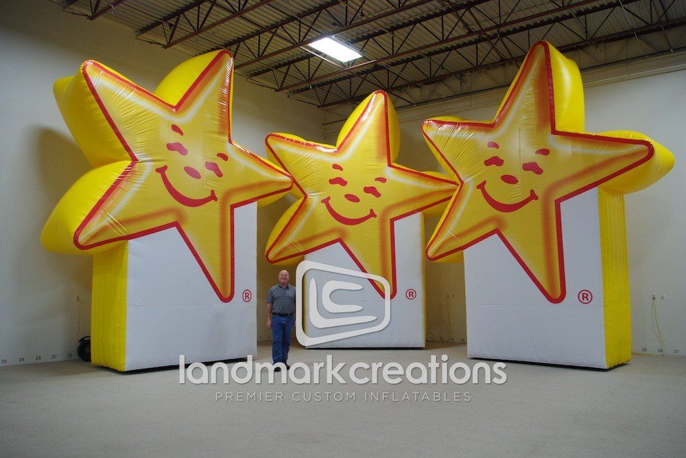 Custom inflatable billboards, like these giant stars for Carl's Jr. Restaurants, are a fun way to increase brand recognition. Bonus: inflatable billboards are easy to set up and manage!