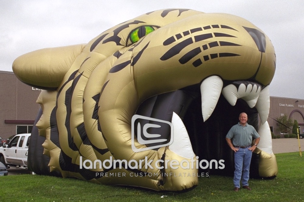 Charleston High, home to the tigers, inflate their gold tiger head tunnel at football games to pump up both fans and players before the game!