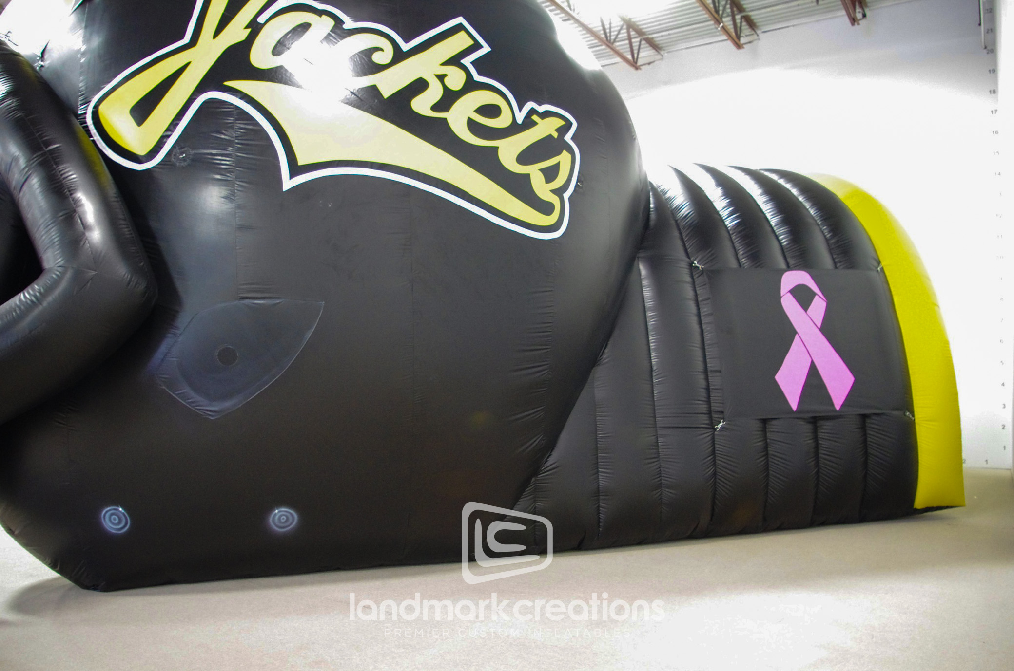 The Denison Jackets Helmet inflatable is a custom mascot feature that amplifies school spirit. Perfect for sports events, pep rallies, and community gatherings, this attention-grabbing inflatable brings excitement and pride to any event.