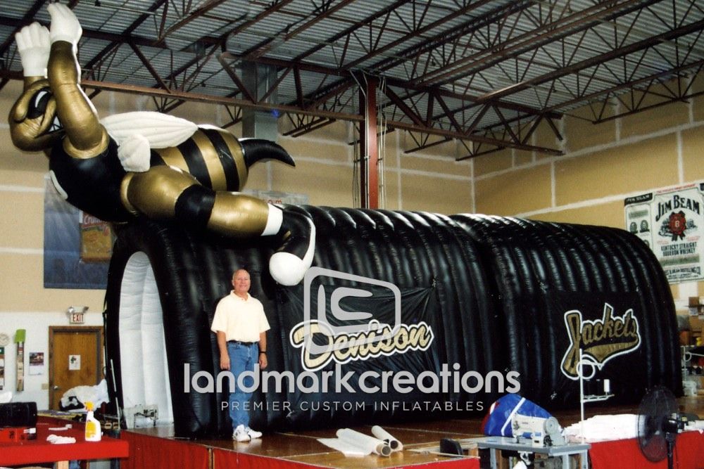 The Denison Athletic Booster Club purchased this inflatable sports tunnel, topped with a giant yellow jacket, to create some serious buzz for their football team at athletic events!