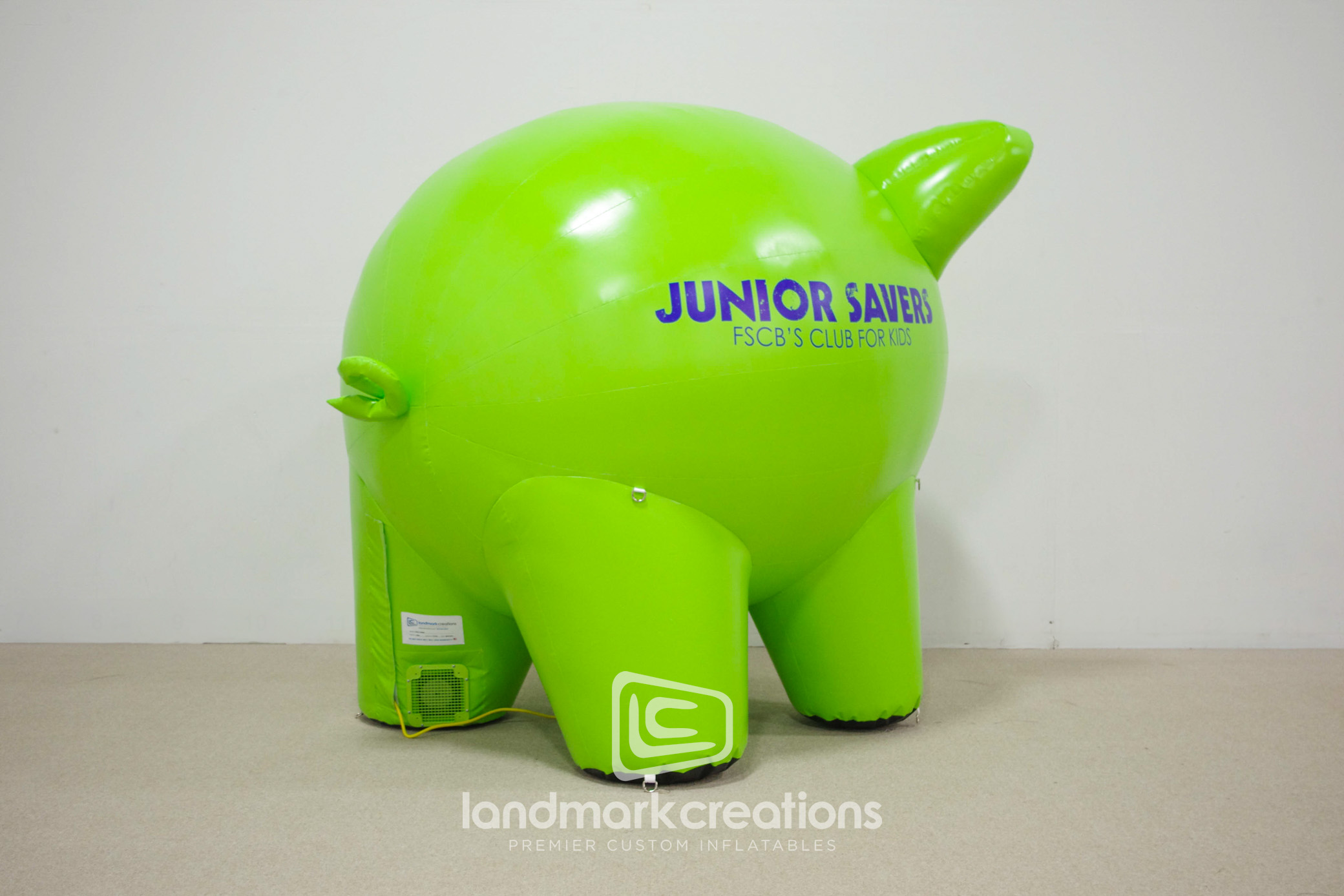 The First Community Piggy Bank is a charming inflatable designed to promote financial literacy and community savings programs. Its whimsical design attracts attendees, creating a memorable connection to financial education efforts at fairs and events.