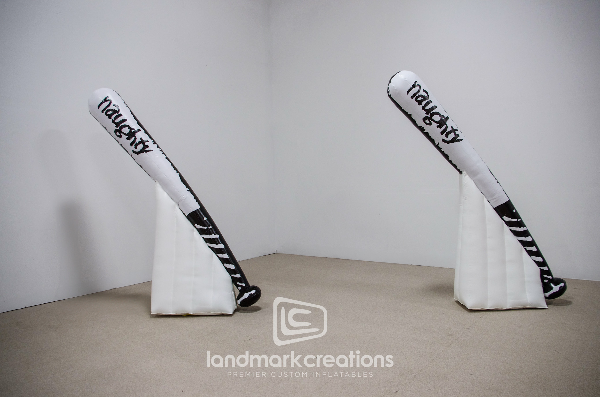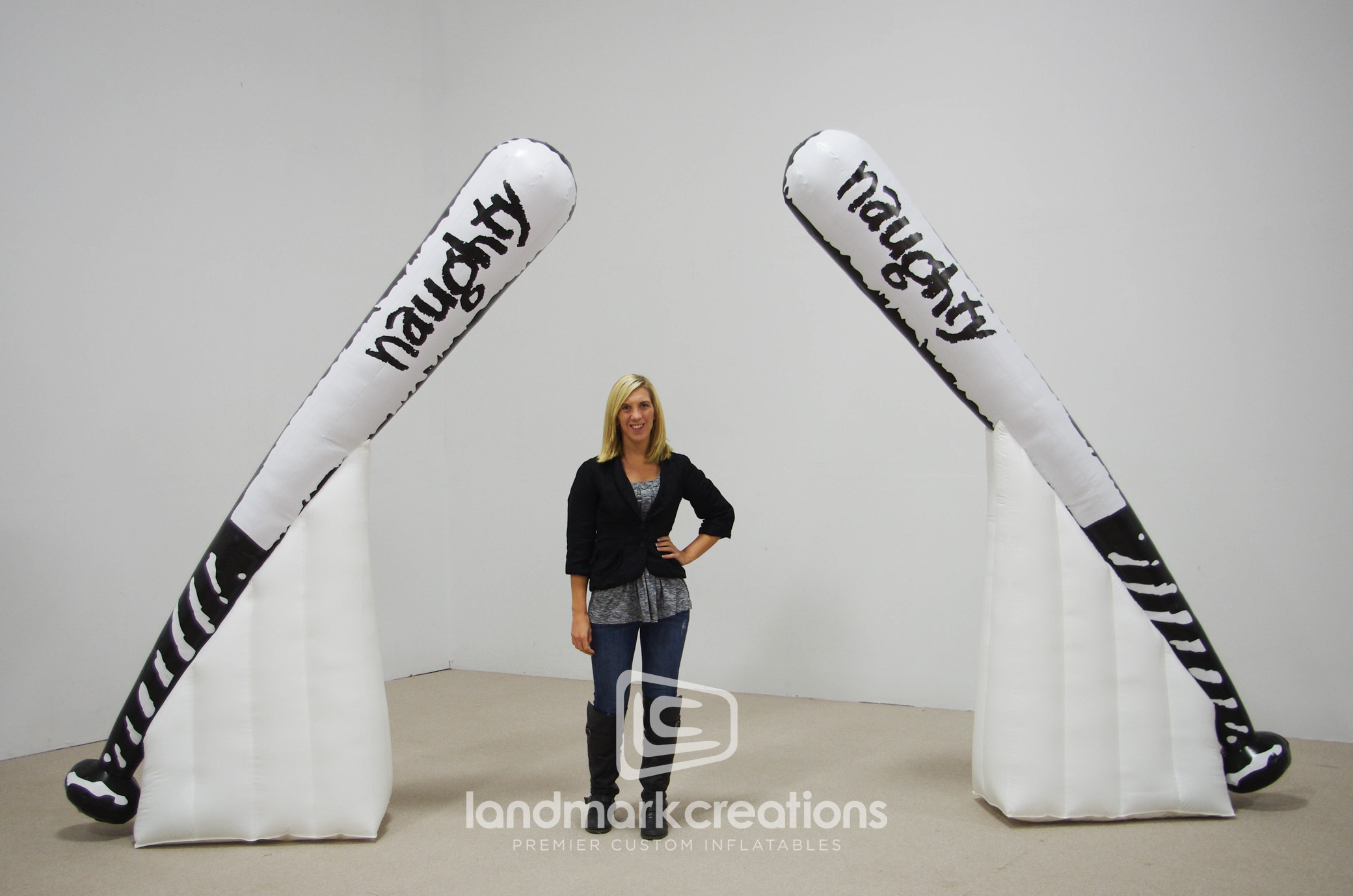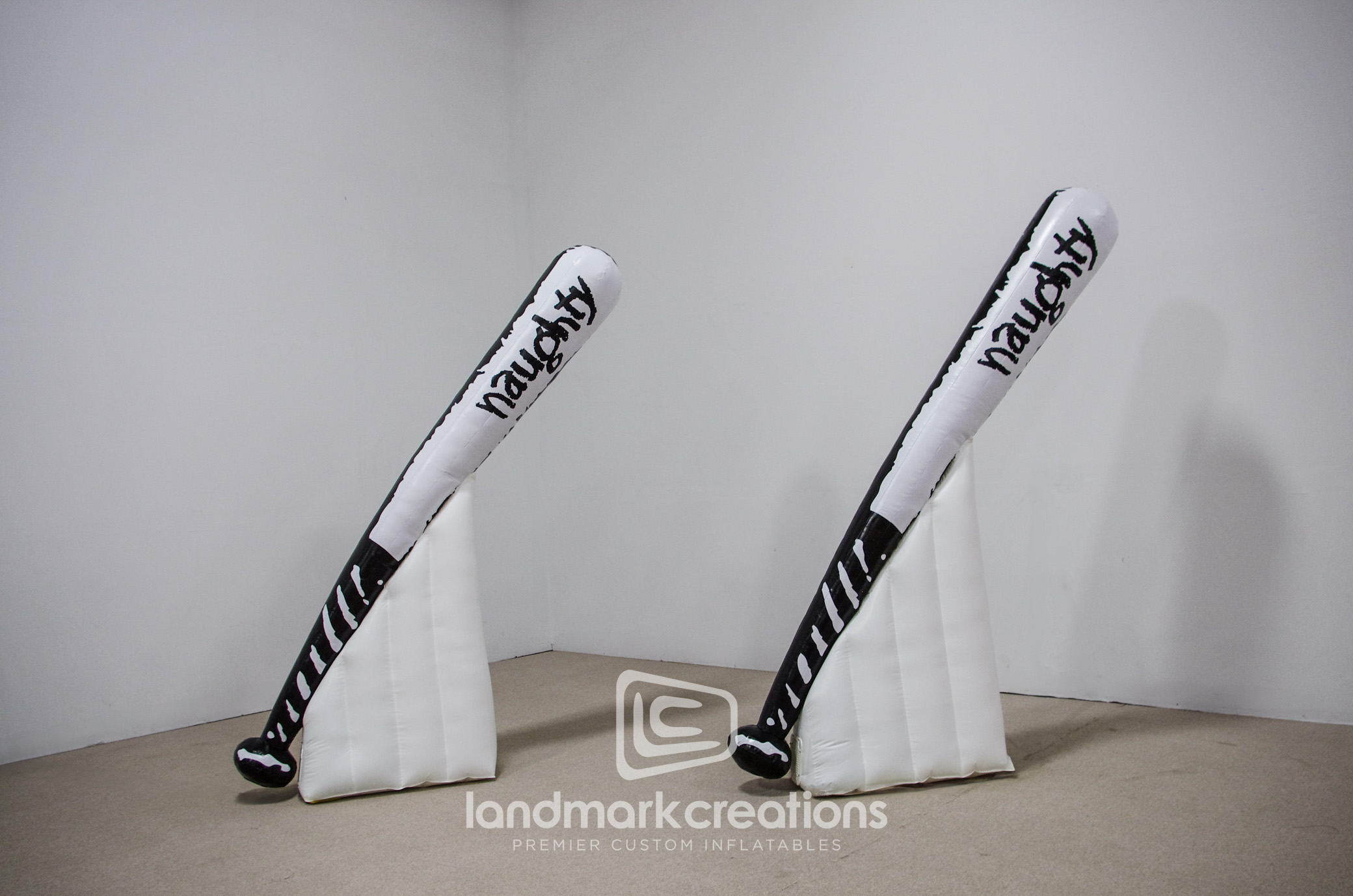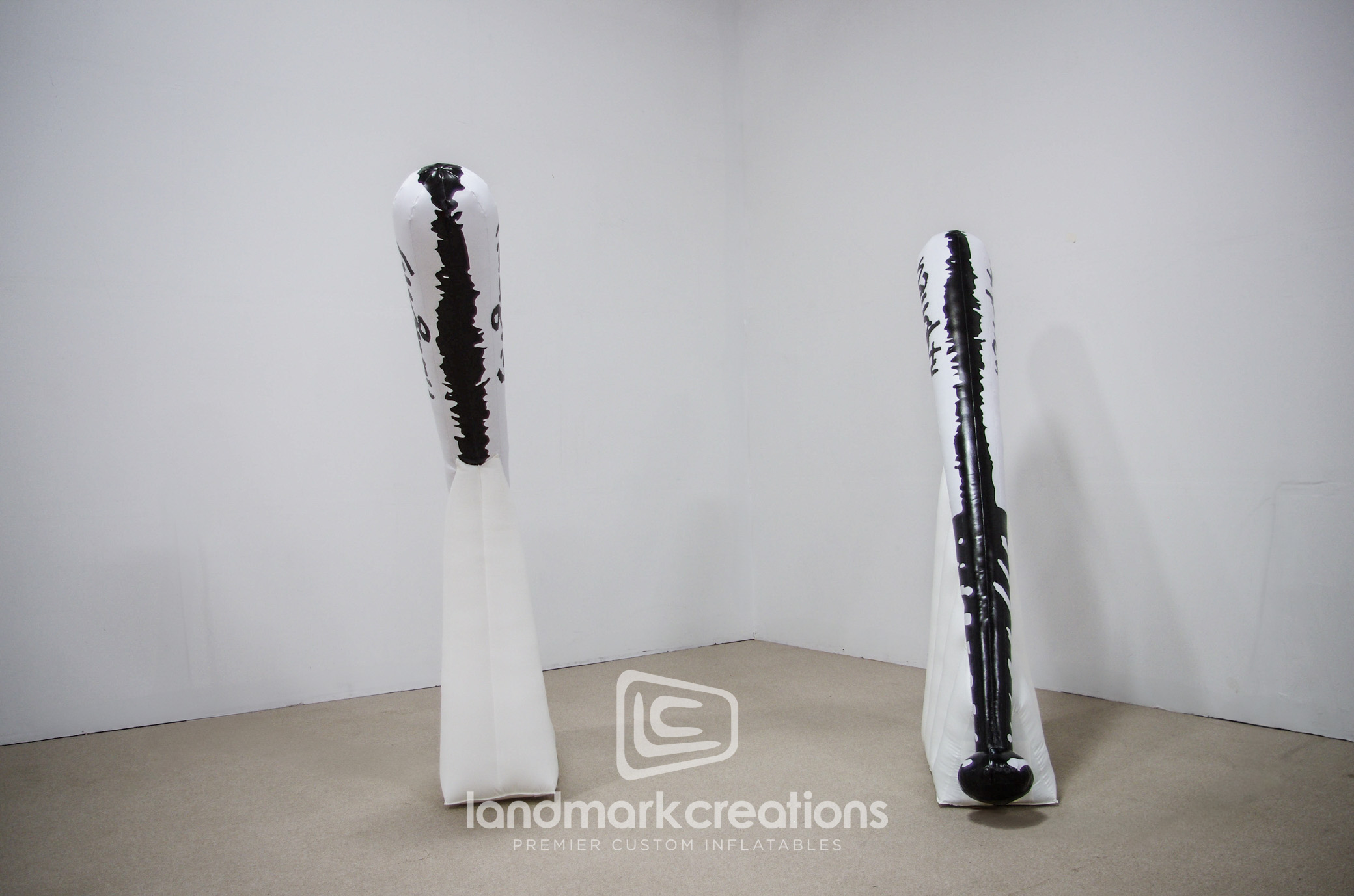 These custom-designed, 9-foot inflatable bats were created for Naughty By Nature’s concert stage, offering a dramatic visual impact. The wedge-shaped bases discreetly house the blower and sandbags, allowing the inflatables to stand independently without additional support—ideal for indoor venues. This feature ensures easy setup and stability, making these inflatables perfect for concerts and events where space and time efficiency are key.