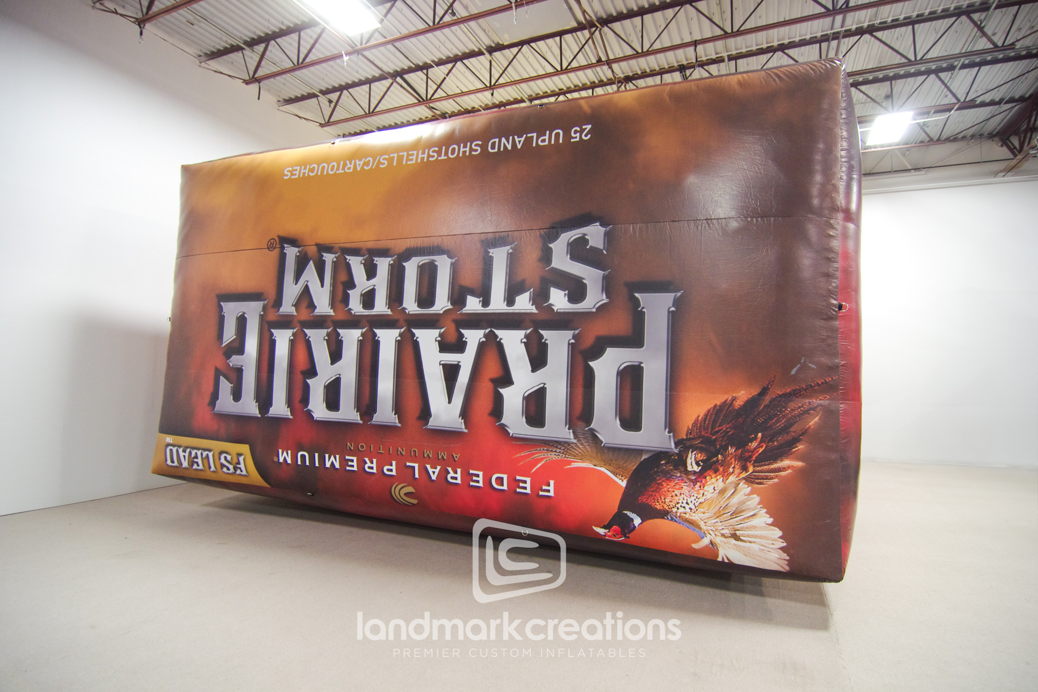 Federal Premium Ammunition builds brand awareness at grand openings, dealer shows and consumer events with their enormous Prairie Storm pheasant shotshell box replica.