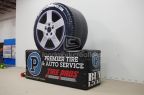 The automotive promotional arena is packed full, so smart marketers know to choose tools that deliver big impact. Premier Tire Pros can use this giant logo in multiple outlets for high visibility.