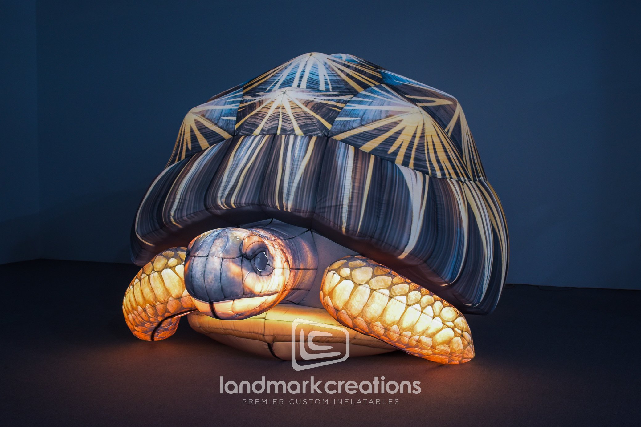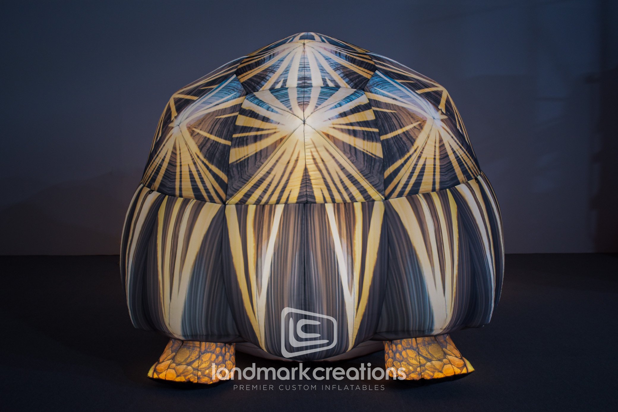The intricate shell detail of this giant Radiated tortoise inflatable is mesemerizing with or without internal lighting, making it a perfect addition to the Virigina Zoo's collection of engangered species displays featured in "ZooLumination", the zoo's outdoor winter event.