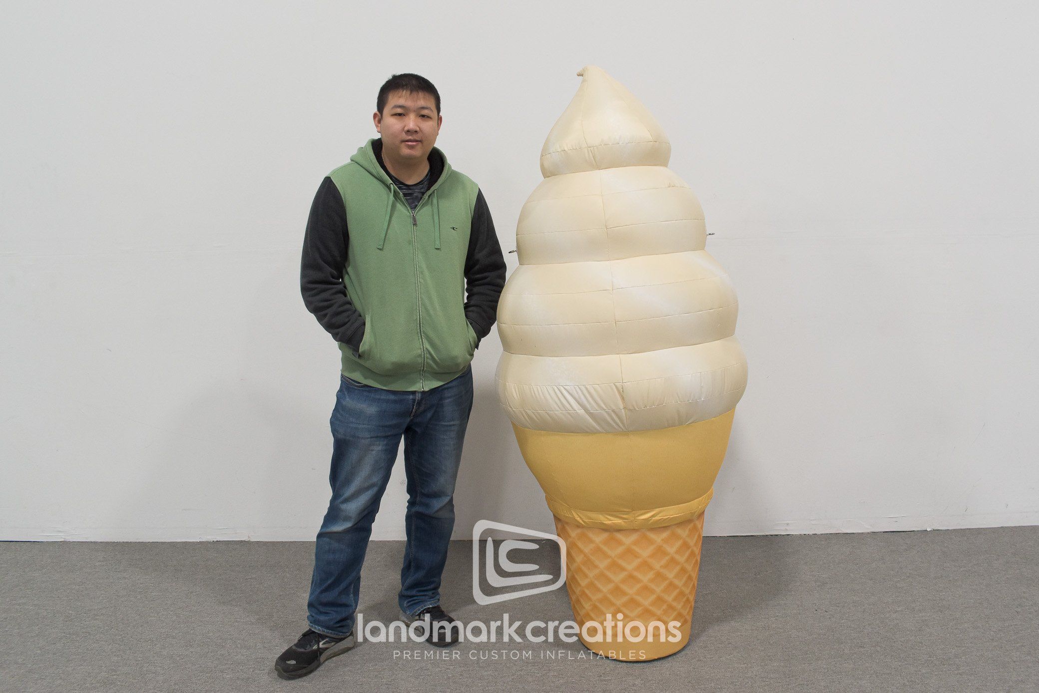 Need a creative idea to promote your food or beverage product at special events, festivals, or retail location? Custom inflatable product replicas, like this soft-serve ice cream cone can be created in any shape, size or level of detail to suit your product or brand. Custom inflatable displays are easy to set-up and transport between events, and they make fun photo opps that can extend your promotion on social media long after the event is over.