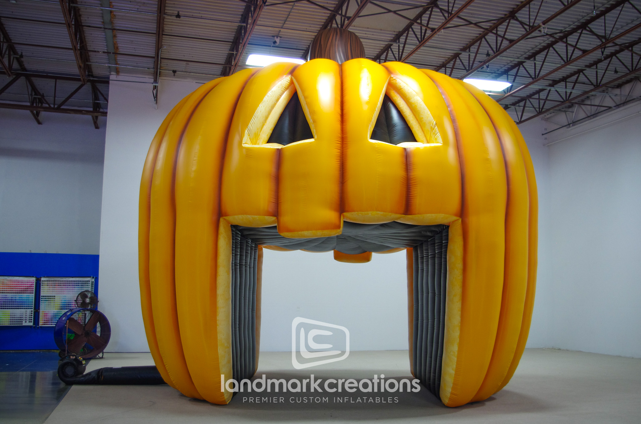The Two Faced Pumpkin Tunnel inflatable is a creative centerpiece for Halloween-themed events. Its spooky yet fun design captivates attendees, making it an excellent addition to haunted houses, pumpkin patches, or community festivals.