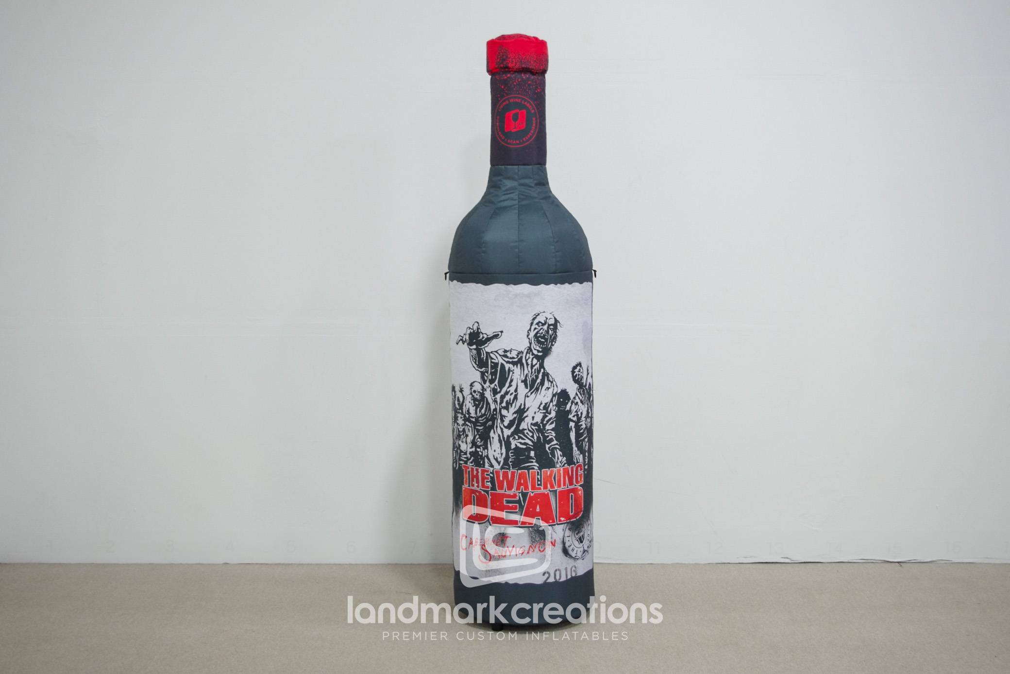 Commissioned by FUSE for Lot18's Walking Dead Wine collection, this custom inflatable replica of a zombie-themed wine bottle captivated attendees at the 2018 Walker Stalker Convention in Lombard, IL. Integrated augmented reality features allowed users to scan the bottle, triggering dynamic animations that enhanced engagement and created a memorable brand experience.