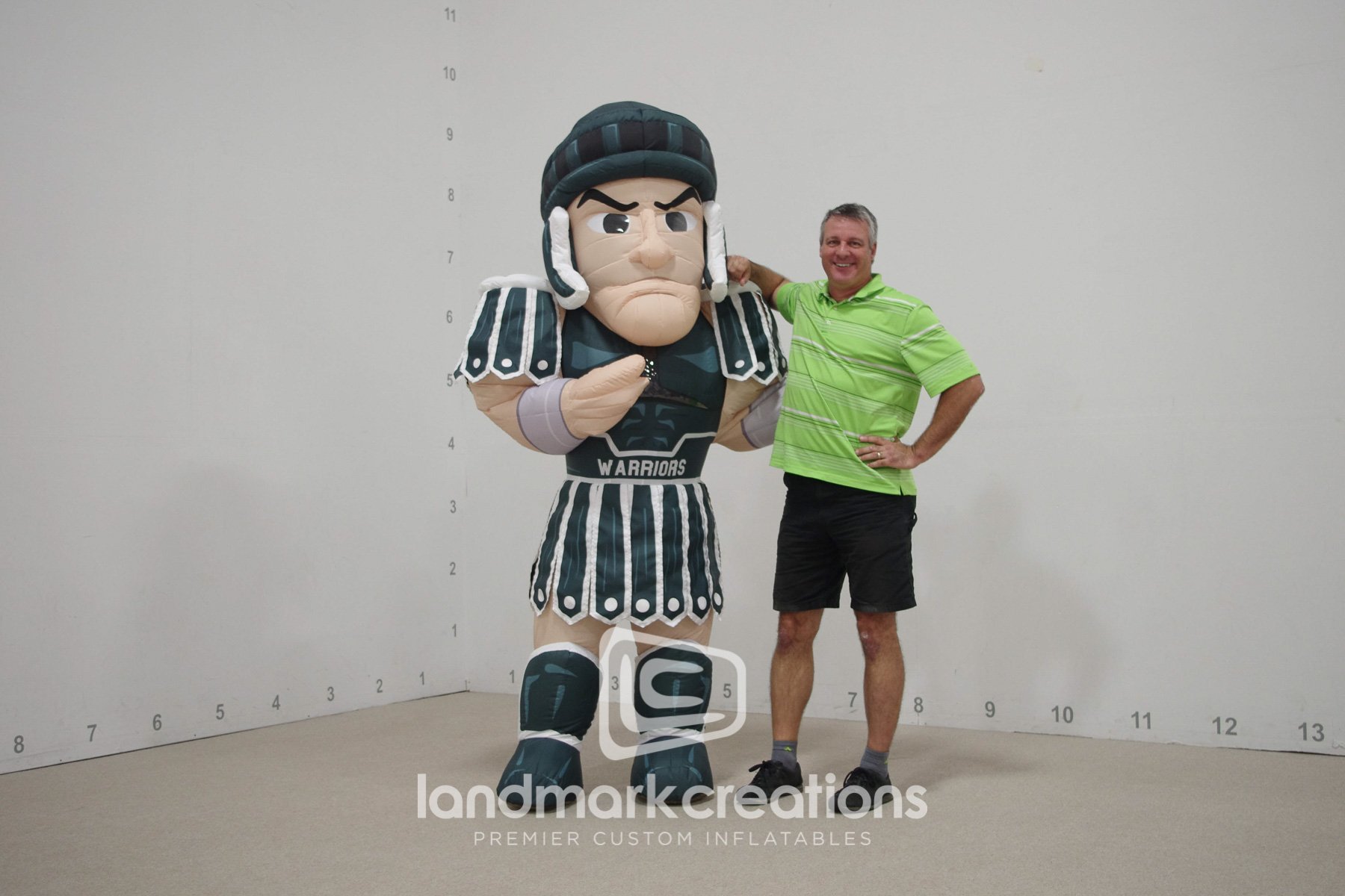 This inflatable warrior costume commissioned by Schuyler Community Schools raised the spirits of fans the bleachers. Inflatable costumes are a great way to get fans excited about new branding at any sporting event!