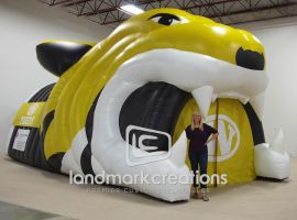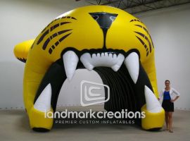 Wilson High School gets fans excited by inflating their custom tiger sports tunnel during athletic events. With bright eyes and the school emblem printed on the side banners, this inflatable tunnel is fierce!